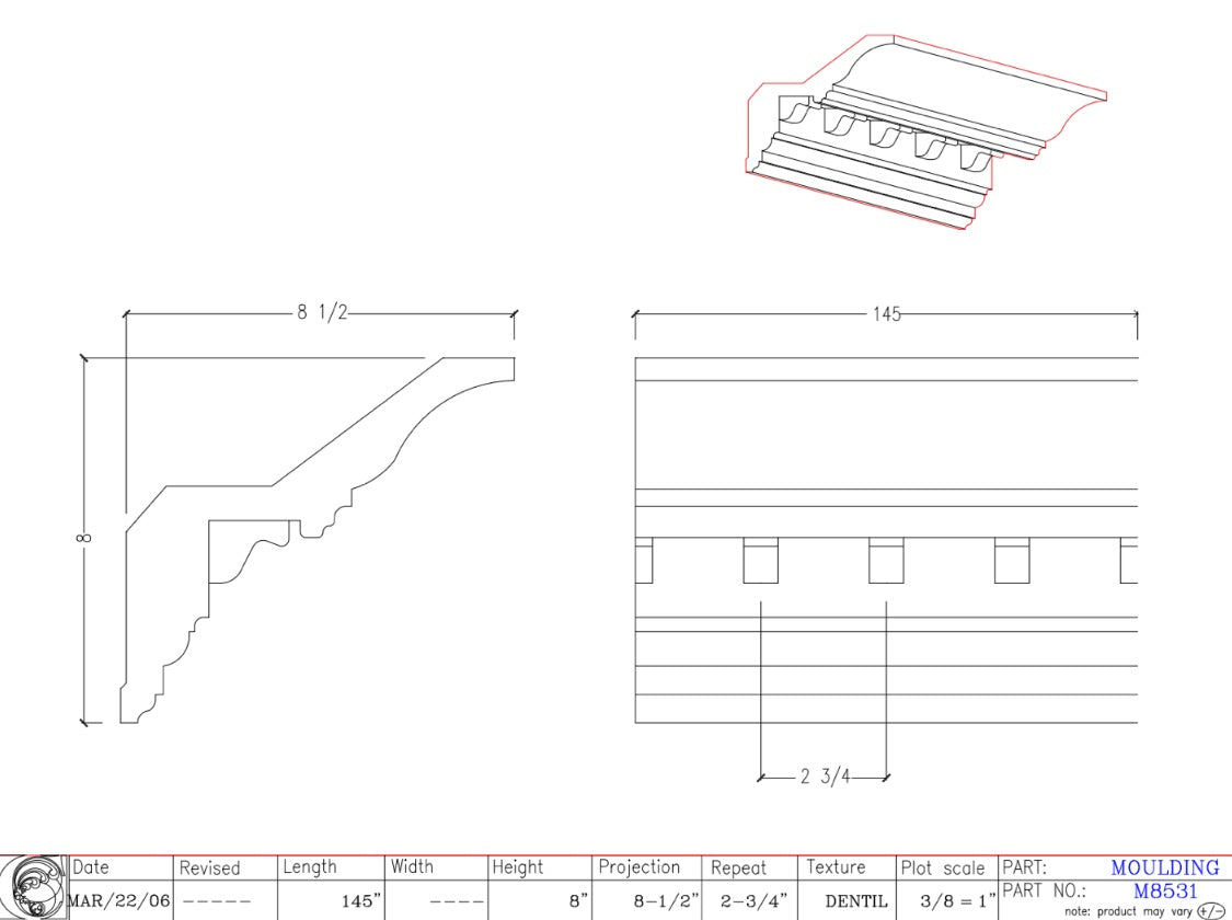 Experience the elegance and sophistication of M8531 with its exquisite crown dentil moulding. Add a touch of luxury to any room with this elegant and timeless design. Trust in the quality and beauty of this product, as it is crafted with the utmost care and attention to detail. Create a lasting impression with M8531.