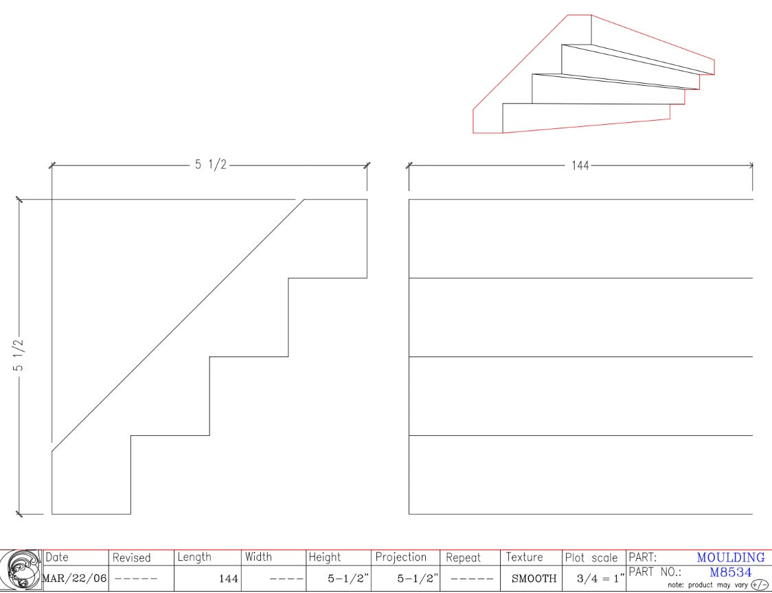 Add a touch of elegance to any room with M8534 Crown Moulding! This stunning detail will elevate the aesthetic of your home and impress guests. Made from high-quality materials, it's sure to last for years to come. Transform your space into a luxurious oasis with M8534 Crown Moulding.