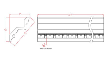 Elevate your home's exterior with our C805 product! This stunning SOFFIT DENTIL trim adds a sophisticated touch to your facade. Measuring 7 1/4" in height and 6" in projection, it offers a perfect balance of style and functionality. At 120" in length, it provides ample coverage for a seamless finish. Upgrade your curb appeal and impress your neighbours with C805!