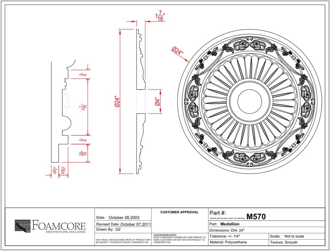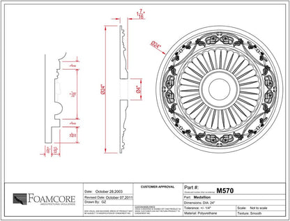 Elevate your home decor with the Foamcore 24" Ceiling Medallion M570. This compact and elegant medallion is the perfect way to add a touch of sophistication to your light fixtures. Designed with intricate details, it enhances the aesthetic appeal of your ceiling without overwhelming the space. Made from lightweight and durable materials, it ensures easy installation and lasting beauty.