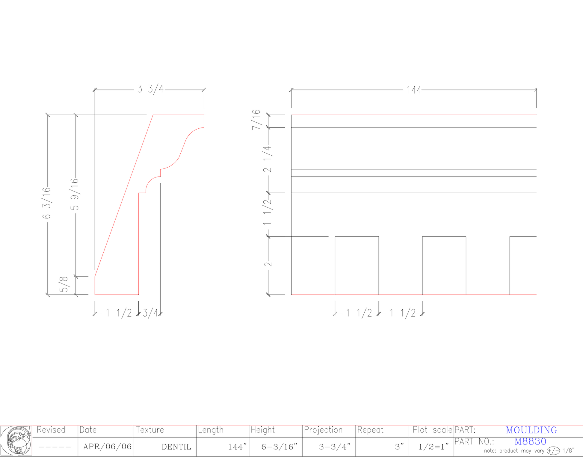 Crown Moulding with Dentil | M8830
