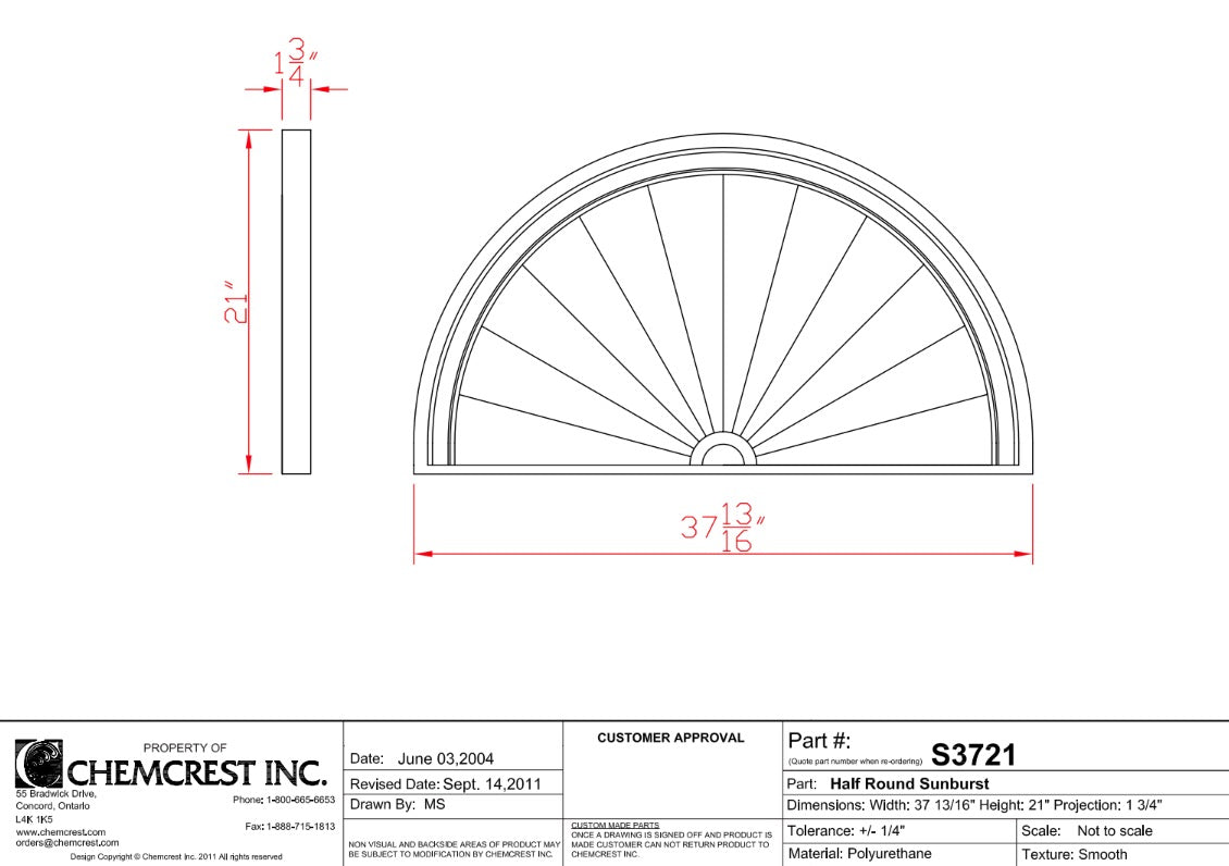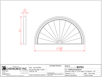 The Half Round Sunburst Louver (model S3721) is expertly crafted from durable polyurethane, offering a lightweight yet resilient architectural accent. Its half-round sunburst design adds a classic, elegant touch to any exterior or interior space, enhancing visual appeal while providing subtle ventilation. Ideal for both restoration projects and new builds, this louver combines aesthetic refinement with long-lasting performance.